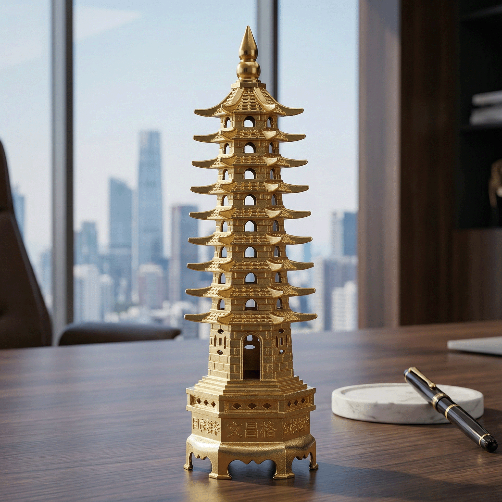The nine-tier structure symbolizes continuous progress, wisdom, and achievement in traditional Feng Shui philosophy. - Elegant Cultural Decoration