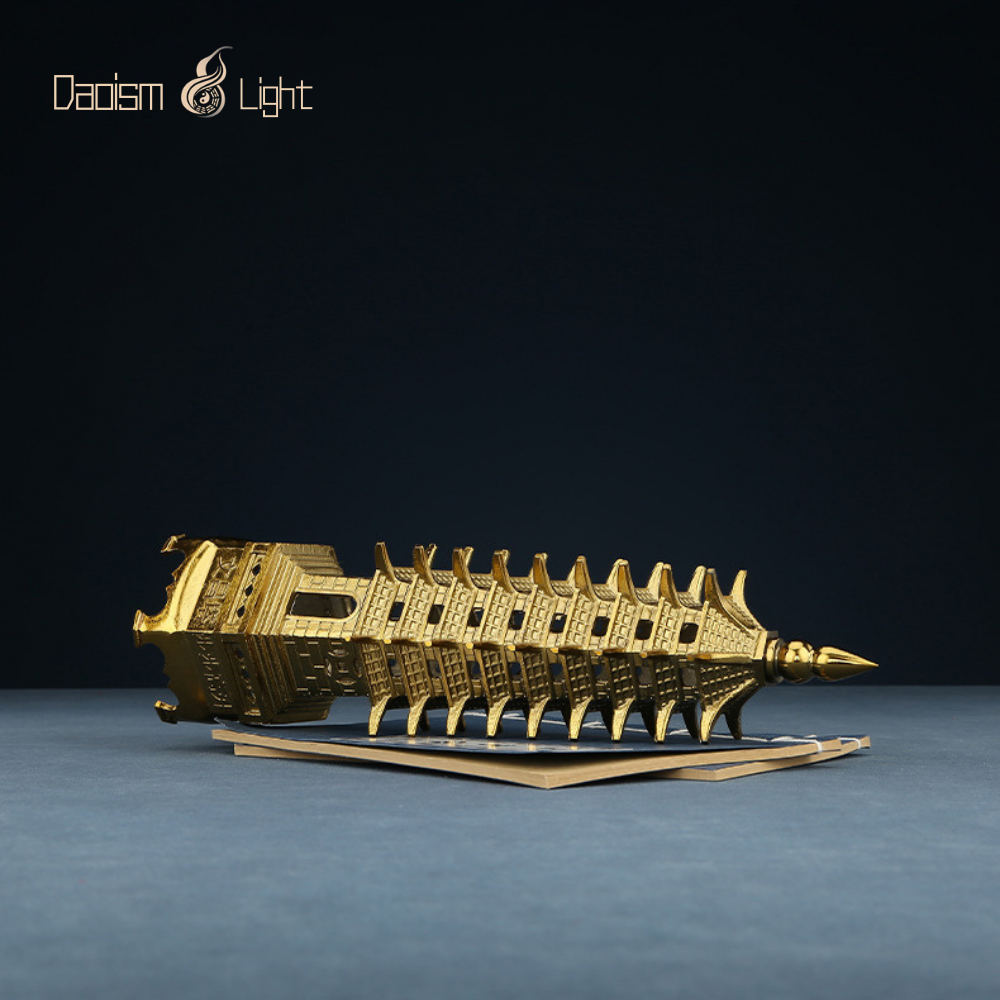 Made from solid brass with a smooth polished surface, offering durability and a classic golden tone that ages beautifully over time. - Traditional 9-Level Pagoda Design